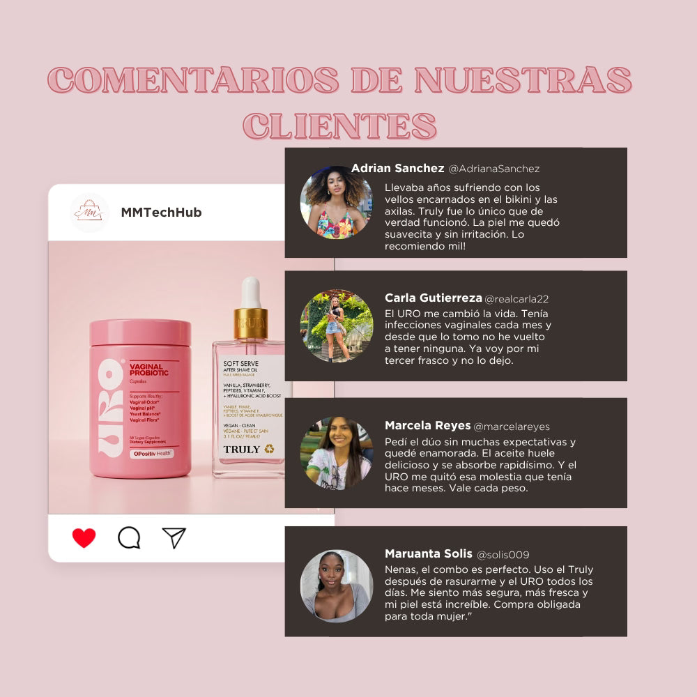 ¡Claro que sí! Se complementan perfectamente. Truly cuida tu piel por fuera y URO protege tu salud íntima por dentro